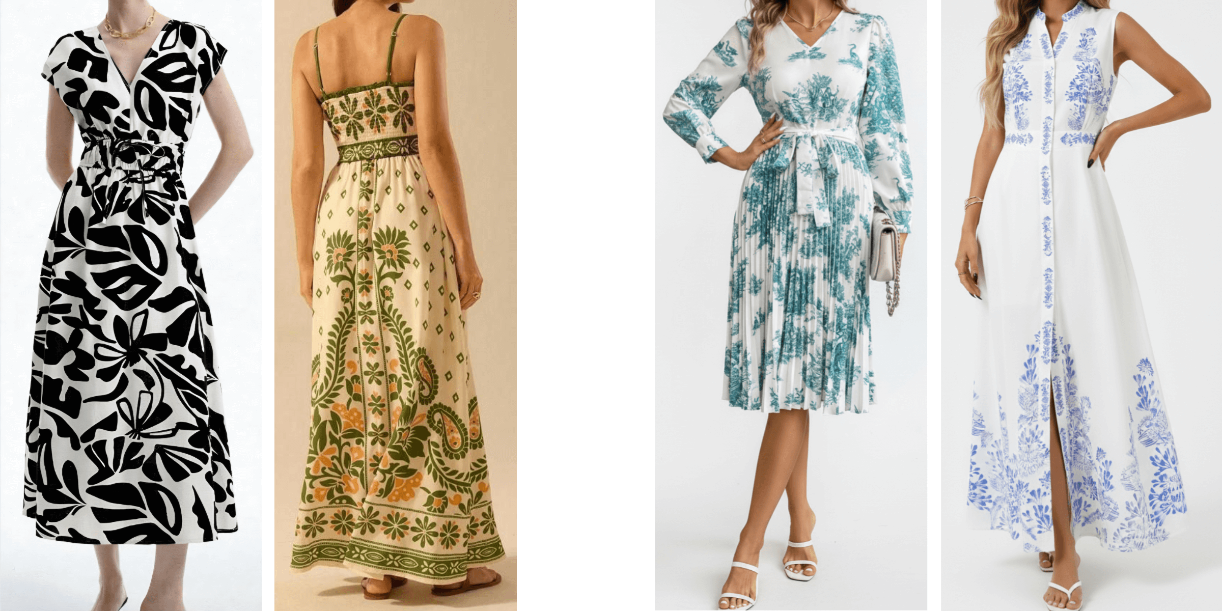 Vestido estampado botánico y manga campana: Paquete mayoreo 3 piezas